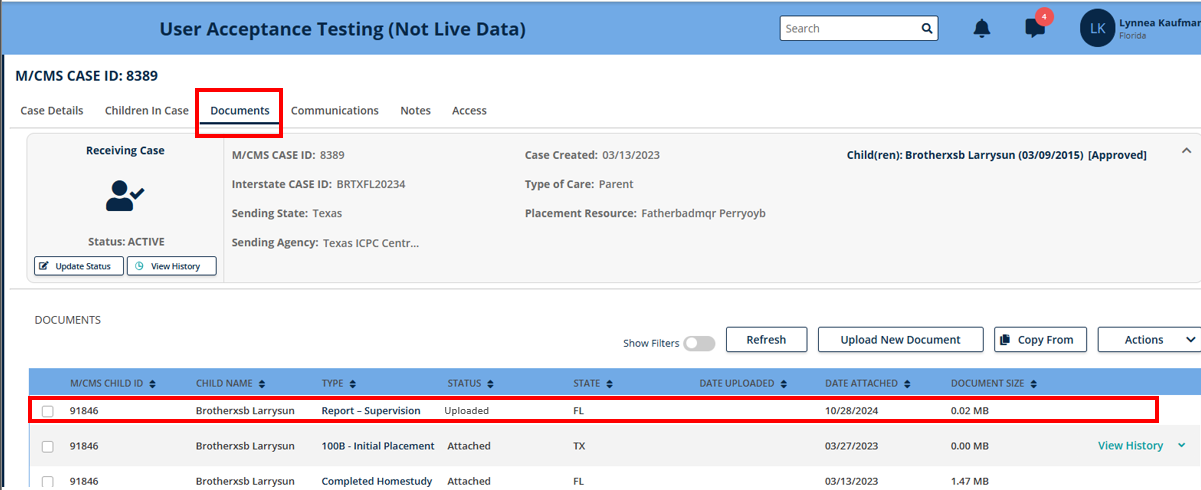 6. The caseworker will see the Uploaded Report-Supervision in the list of documents on the Documents tab: